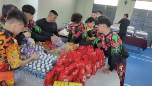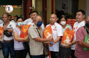 配合古晋福建公会凤山寺甲辰年广泽尊王巡游活动,今天上午举办布施活动。 ·由善信彭安琪、曾淑仪及林垂琦报效300包斋饭布施活动。 ·古晋福建公会妇女组主任刘碧云报效分发500包斋饭/素面布施活动,同时新香斋企业之嘉宏食品及古晋南市市议员劉儱語报效1000粒咸豆沙,而刘碧云也额外报效盒饭给予济世之家。 ·联兴武术协会香火龙队报效分发500包10公斤白米布施活动。田诗其、张甄娜/报导